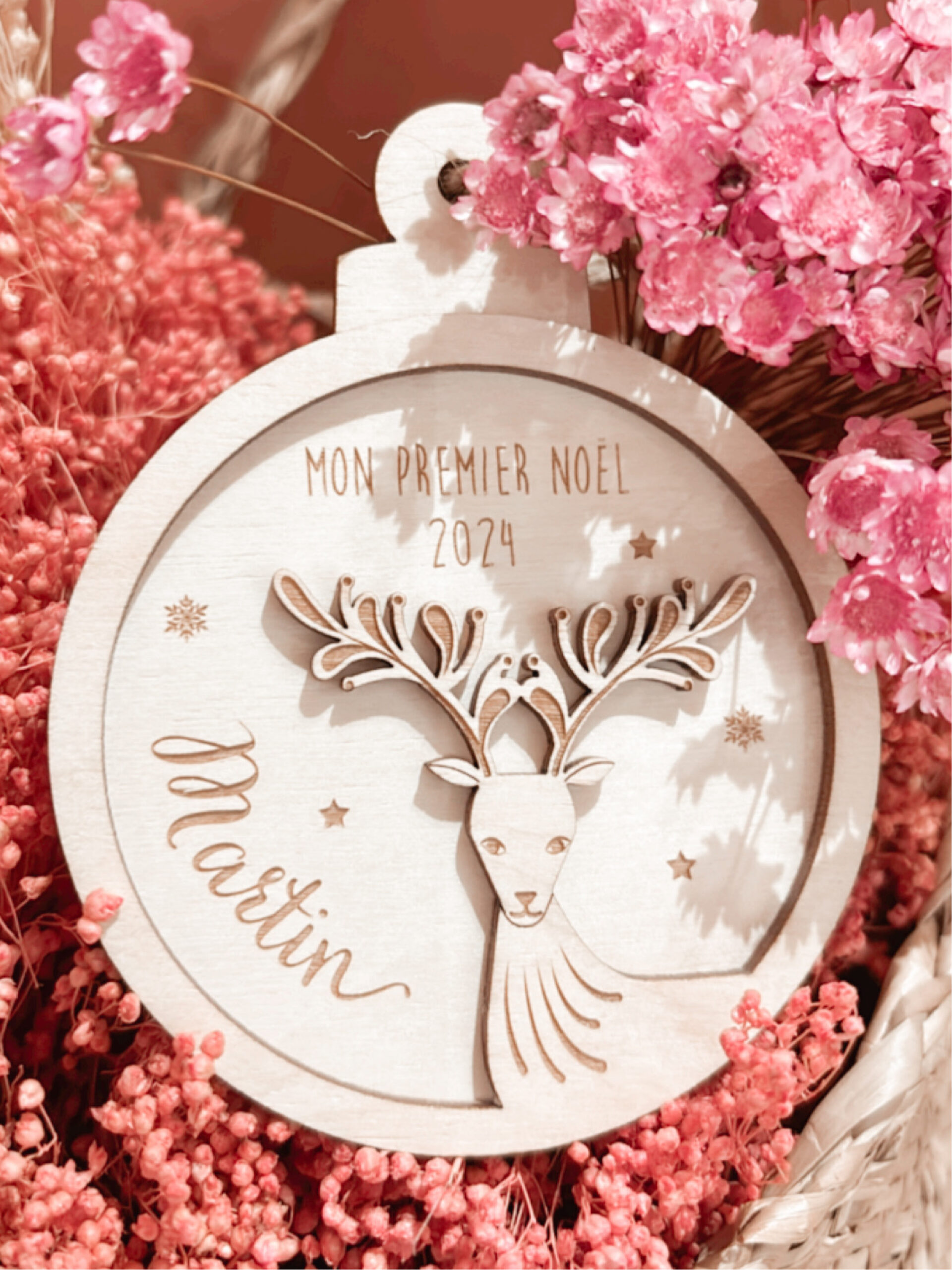 Cette boule de Noël personnalisée fera le bonheur des petits comme des grands : cadeau de naissance, souvenir de famille, décoration de table ou attention délicate pour vos proches.