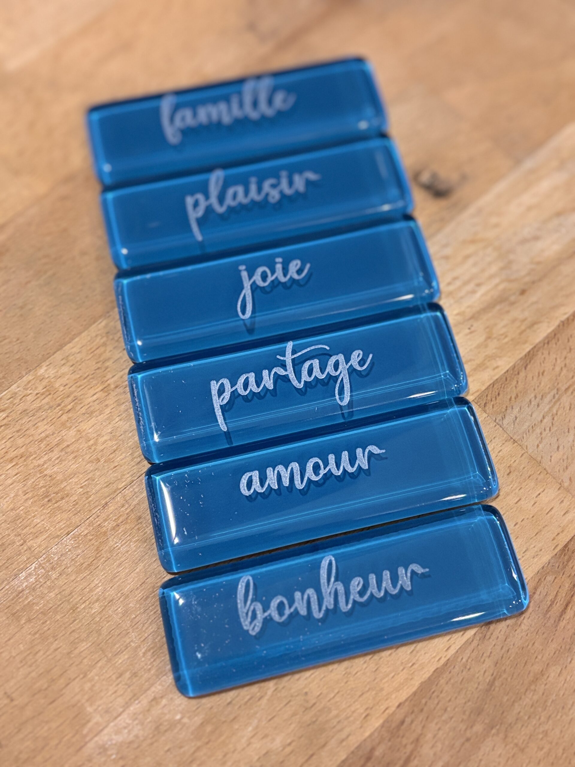 Sublimez vos tables avec la collection “Rose Corail”, une ligne élégante en verre fabriquée et peinte à la main au Portugal 🇵🇹 et gravés par mes soins.