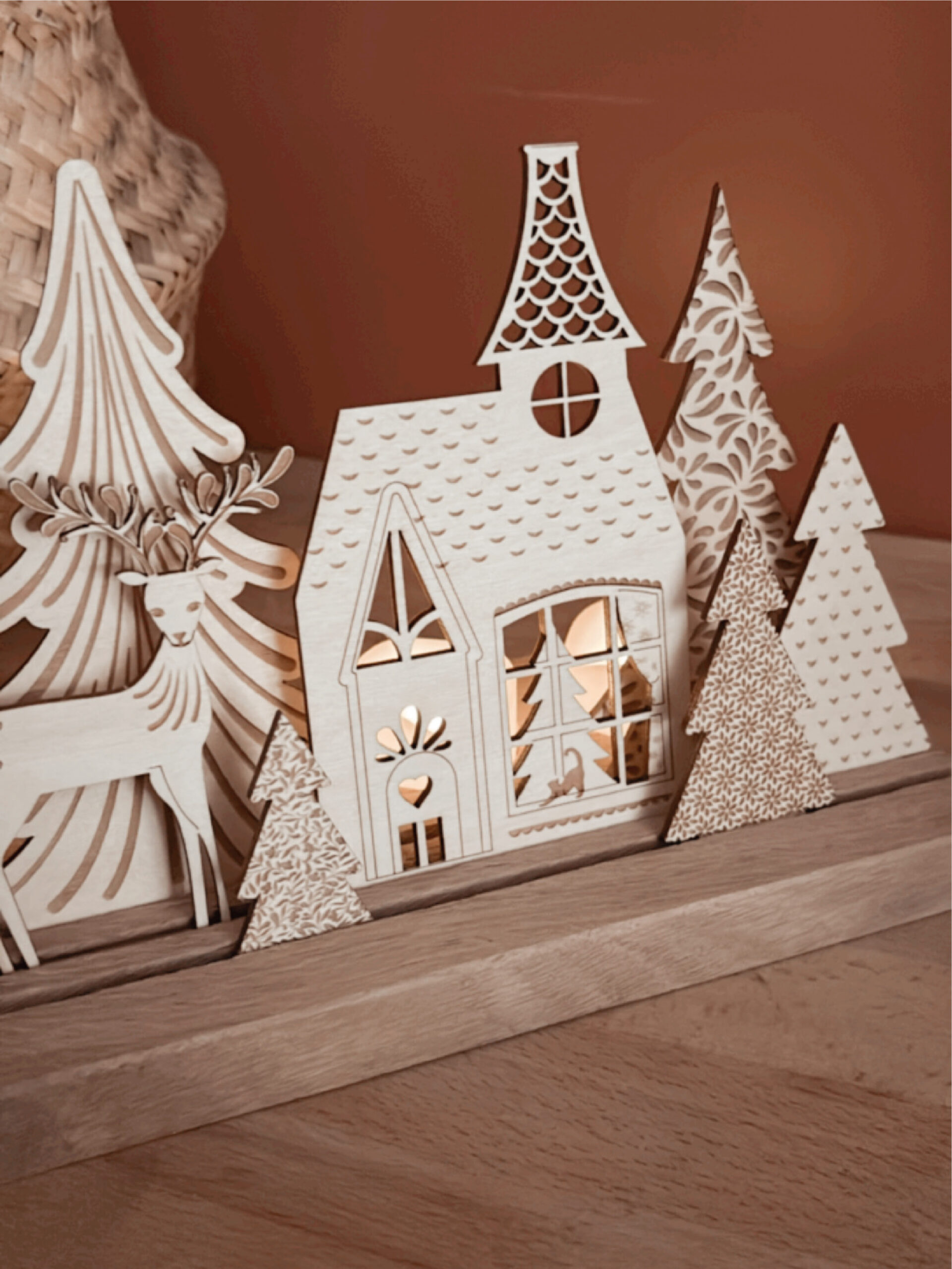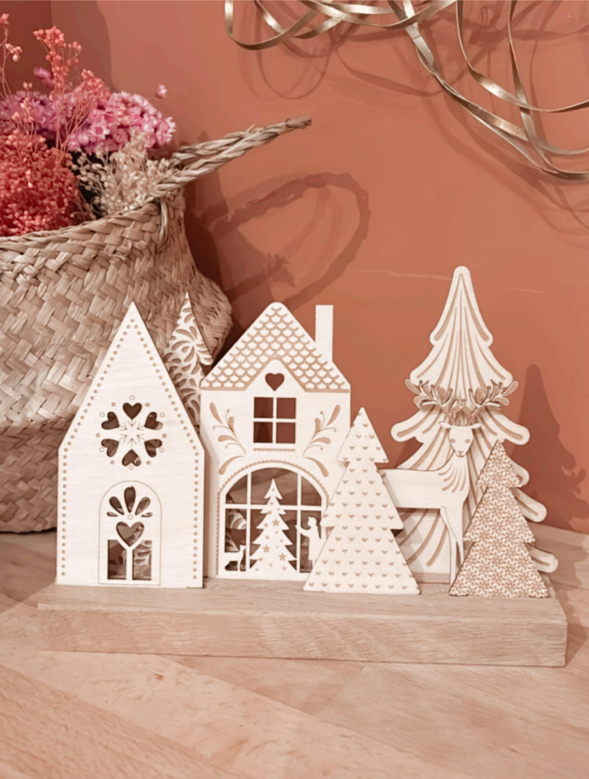 Village de Noël en bois – décoration artisanale et chaleureuse